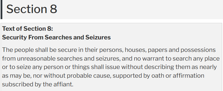 Below are a few of the highlights of our rights, which total 28 sections in Article I of the PA Constitution. To view the entire Article I text please click here.