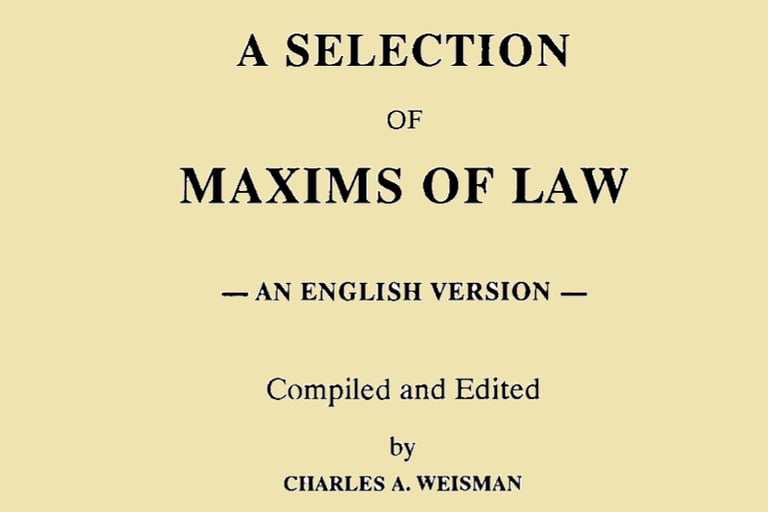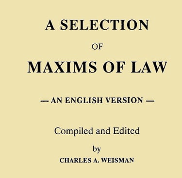 In Law, as with any science, there exists certain fundamental principles which form its basis and to which reference must be frequently made in its application. These fundamental principles in law are referred to as "Maxims of Law." Sir William Blackstone says they are "somewhat like axioms in geometry. " Certain Maxims of Law have prevailed throughout recorded history. They can be found in the old English Common Law, in the ancient Roman Law, and can be found in the Bible as well.These maxims of law are so manifestly founded on reason,necessity and Divine precepts, that they have been universally accepted as being true rules and principles of law. They thus have become a part of the general customs and common law of the land of every civilized nation. In describing the established Maxims of Law, Sir Edward Coke,a leading English authority on the law, stated: "A maxim is so called because its dignity is chiefest, and its authority the most certain, and because it is universally approved by all. "